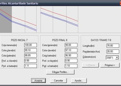 Este módulo ofrece funciones de reconocimiento en redes de alcantarillado, establece dirección de flujo, cotas de terreno, símbolos y adosada, calcula distribución de población, velocidad y tirantes, mínimos y máximos, volúmenes de excavación, entre otros.