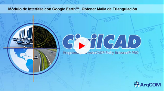 Este módulo permite importar y exportar fácilmente mallas de triangulación, polígonos, puntos e imágenes georeferenciadas entre Google Earth™ y AutoCAD para usarlas como plantilla de trazo en sus proyectos generando curvas de nivel , perfiles gracias al módulo interfase con google earth